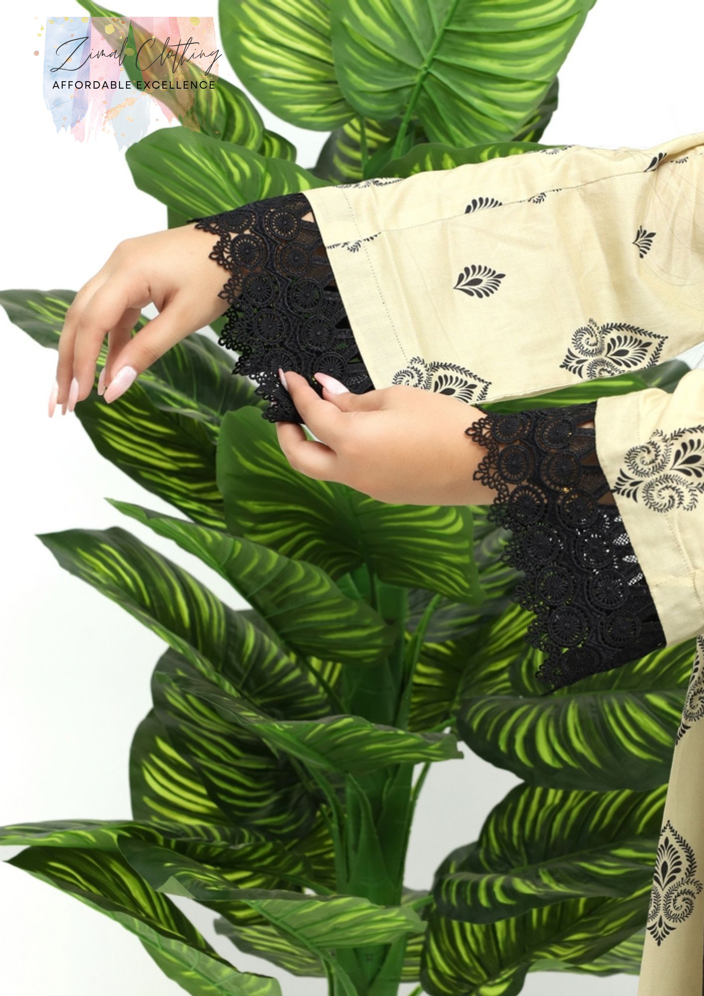 Step into timeless elegance with Zimal Clothing’s Black Beauty Printed Lawn Suit. This stunning 3-piece Pakistani lawn dress features a bold printed lawn shirt, classic lawn trouser, and a beautifully woven jacquard dupatta — making it the perfect outfit for women who love style, grace, and tradition. Ideal for both casual wear and semi-formal occasions, this suit is a must-have in your wardrobe.