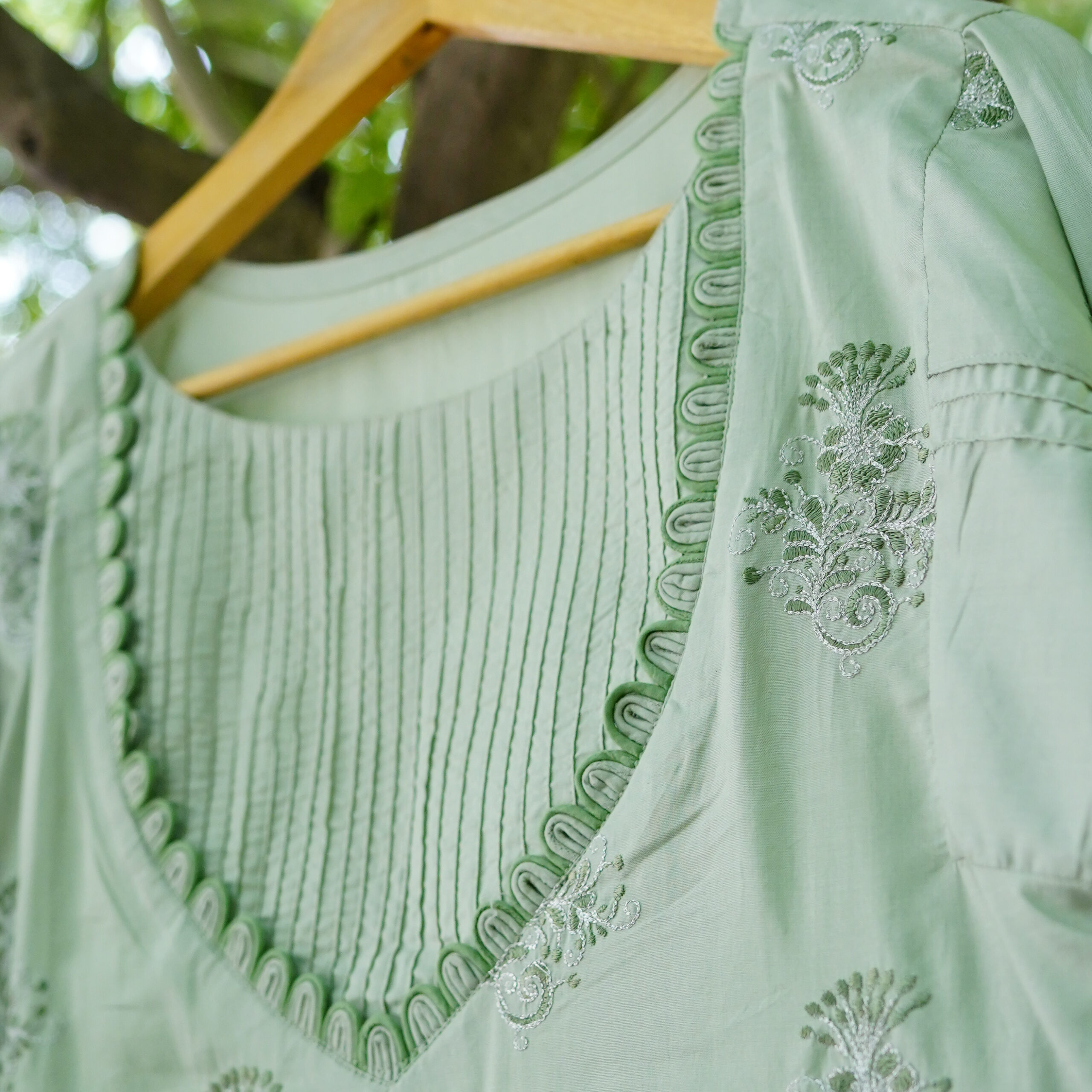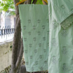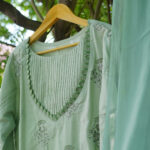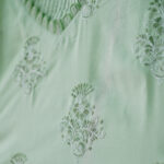 The matching plain lawn trouser ensures comfort without compromising style, making it versatile for both casual and semi-formal settings. To complete the look, a soft chiffon dupatta in a coordinating green shade adds flow and elegance, making this outfit effortlessly chic.